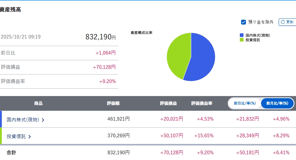 これは10月20日現在の値ですが、明暗がくっきりと別れる感じですね。