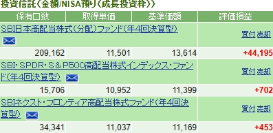成長投資 2,707円(SBI日本高配当株式(分配)ファンド(年4回決算型))