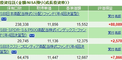 成長投資 3,326円(SBI日本高配当株式(分配)ファンド(年4回))